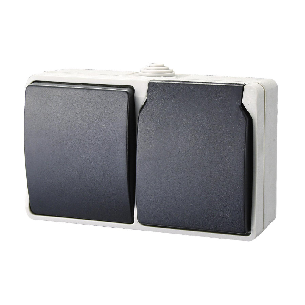AQUATOP 9873H falon kívüli váltókapcsoló és dugalj, 1 billenő, 1 aljzat, vízszintes, 10 A/16 A, IP54, szürke