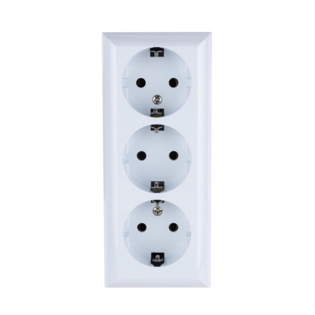 Ez a falon kívüli kivitelű aljzat könnyen telepíthető, és nem igényel süllyesztést, így gyorsan üzembe helyezhető. A földelt aljzat névleges feszültsége 230 V~ / 50 Hz, névleges áramerőssége pedig 16 A, ami biztosítja az optimális teljesítményt és biztonságot. A három férőhelyes kialakítás lehetővé teszi, hogy egyszerre több készüléket csatlakoztasson, így helytakarékos és praktikus megoldást kínál.