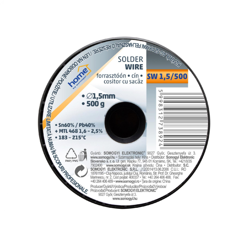 Egy kiváló minőségű forrasztóónt keres, amely pontos és tiszta forrasztási eredményeket biztosít? A Home SW 1,5/500 forrasztóón a tökéletes választás azok számára, akik az európai gyártású, megbízható forrasztóanyagokban bíznak. Ez a forrasztóón ideális választás széles körű villamos és elektronikai forrasztási feladatokhoz.